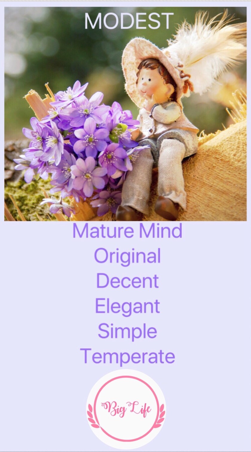 Here are my thoughts. Being modest has no age limit. A mature mind and an original self bring out decency and temperateness, which are simple yet elegant.