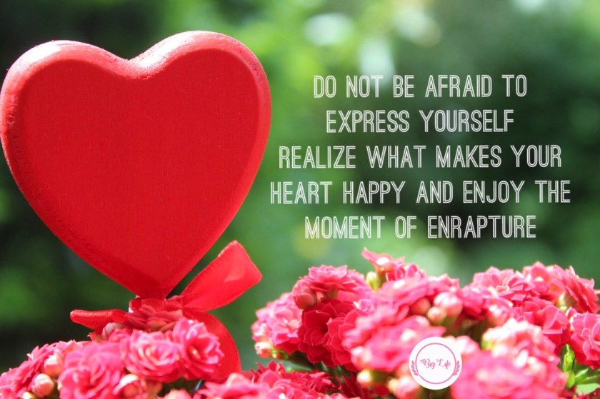 Life is ever evolving and so are the things that make us happy. What we liked last year, might not mesmerize us now and vice-versa. Taking out some “me” time can help us realize how far we have come, what gives us delight and what we do not like. Life happens every moment. It is never too late to adopt new rituals. I believe that an important daily ritual should be to check on ourselves and acknowledge our feelings. We need to do some positive self-realization everyday to call out the things that bring joy in our life. I believe that self-realization is an essential fragment that brings together our doings and feelings. A moment of self-realization can help us to filter out our “stress” stuff and just get enraptured with what is left behind…the “happy” stuff. Express what makes your heart happy and enjoy the moment of enrapture.